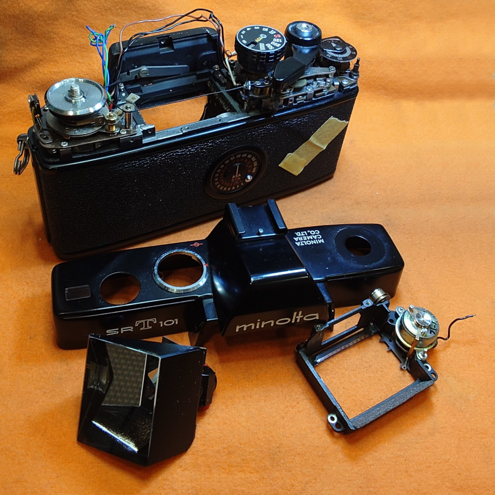 本日は「ミノルタSR-T101」のカメラ修理を行っています。