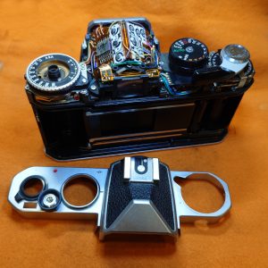 本日は「ニコンFE」のカメラ修理を行っています。