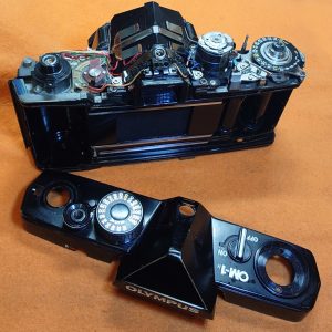 本日は「オリンパスOM-1n」のカメラ修理を行なっています。