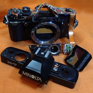 本日は「ミノルタX-7」のカメラ修理を行っています。