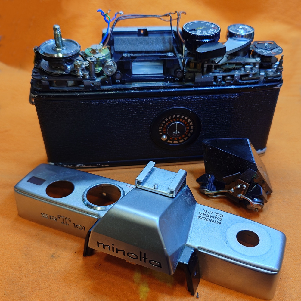 本日は「ミノルタSR-T101」のカメラ修理を行っています。